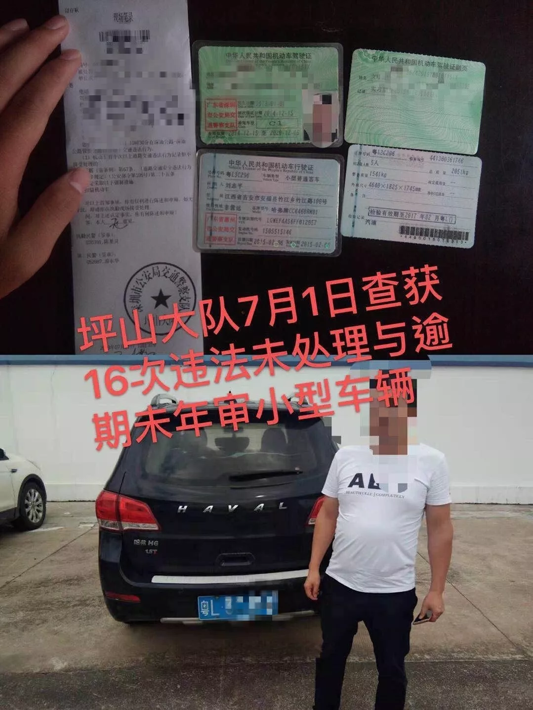 7月1日,深圳交警在坪山大道區(qū)委區(qū)政府路段查獲一16次違法未處理、逾期未年審小型車輛,目前民警已依法將該車扣留,并對其違法行為進行了處罰,及時消除了道路交通安全隱患。