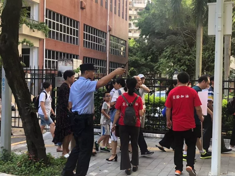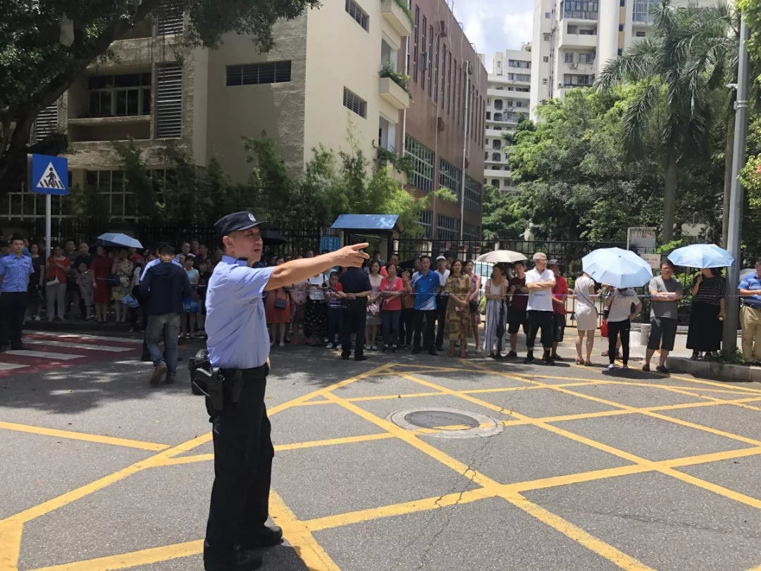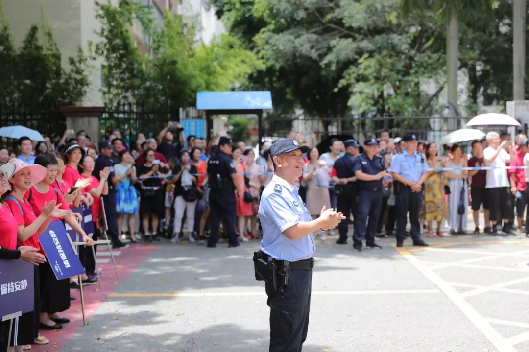 在深圳實(shí)驗(yàn)中學(xué)的校門(mén)外,正在執(zhí)勤護(hù)考的通心嶺派出所所長(zhǎng)林志強(qiáng)正跟送考的家長(zhǎng)們“嘮嗑”。“大家都站這么久了,辛苦了!一會(huì)考試結(jié)束后,咱們來(lái)猜一猜第一個(gè)走出來(lái)的是男生還是女生?!薄拔也率悄猩?。”“我猜是女生?!奔议L(zhǎng)們一掃臉上焦急的表情,開(kāi)始笑著討論起來(lái)。