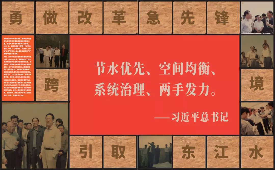 第二部分以“勇做改革急先鋒跨境引取東江水”為題,通過1992年至2004年的東江水源工程規(guī)劃報告及規(guī)劃圖、踏勘團(tuán)隊的工作影像等歷史資料,體現(xiàn)深惠兩地領(lǐng)導(dǎo)對工程的重視和工程規(guī)劃的前瞻性。