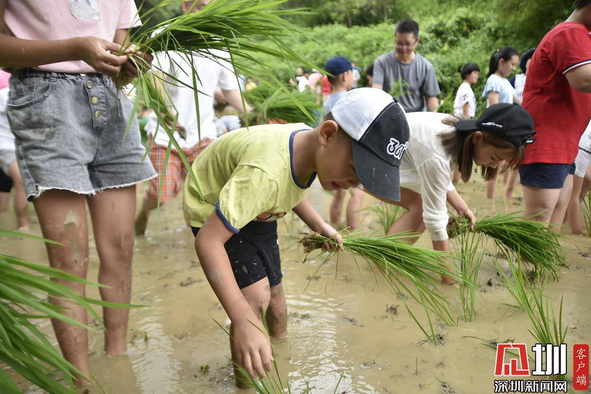 據(jù)了解,本次參加活動的青少年有100多名,他們手持秧苗,腳踩泥漿,在社區(qū)老黨員和家長的指導(dǎo)下體驗插秧農(nóng)耕作業(yè)。據(jù)南嶺村社區(qū)黨委書記張育彪介紹,在深圳高速城市化進程中,南嶺村特意保留了20畝水稻田,作為青少年的勞動教育基地。“目的是讓孩子們不要忘記勞動人民的本色,”他說,“通過感受勞動的艱辛,教育他們要熱愛勞動,富而思進?!?/p>