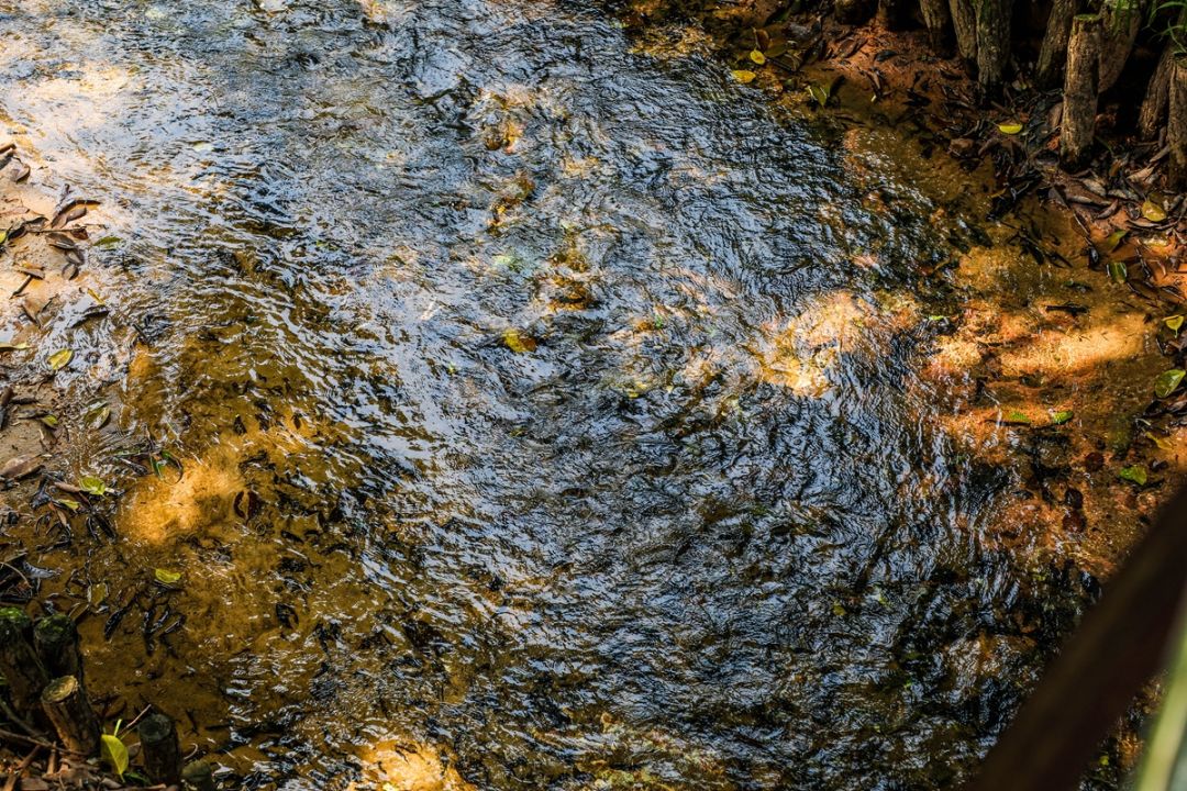 清澈干凈的流水輕撫過岸底巖石