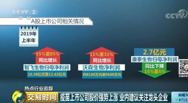 在已經(jīng)公布的2019年半年度業(yè)績(jī)中:智飛生物歸母凈利潤(rùn)10.58億元~12.62億元,同比增長(zhǎng)55%~85%;沃森生物凈利潤(rùn)約8100萬(wàn)元~9600萬(wàn)元,同比增長(zhǎng)11%~31%;康泰生物歸母凈利潤(rùn)為:2.7億元,同比下降15%-5%。