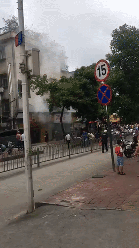 在龍崗區(qū)長(zhǎng)吉路一家燒烤店,幾名店員把串好的羊肉串?dāng)[上燒烤爐,剛一打開(kāi)機(jī)器就起火了,現(xiàn)場(chǎng)濃煙沖起10多米高。