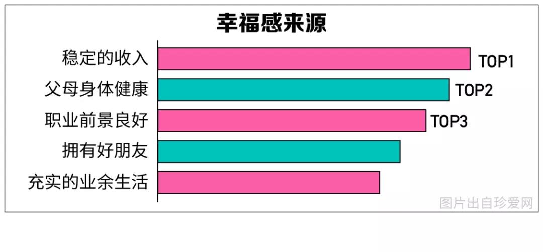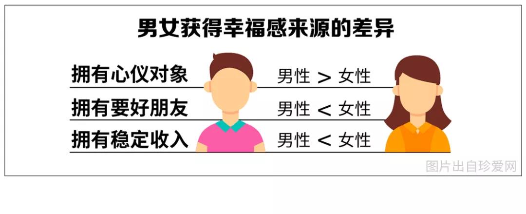 深入研究發(fā)現(xiàn),男性對“擁有心儀對象”的需求比例(6.67%)略高于女性(3.17%),女性則是在擁有要好朋友的比例(28.79%)上高于男性(6.67%),且因?yàn)榉€(wěn)定收入感到幸福的女性比例(60%)比男性(53%)更高??梢姡愿菀讖姆€(wěn)定的收入中獲得幸福感。