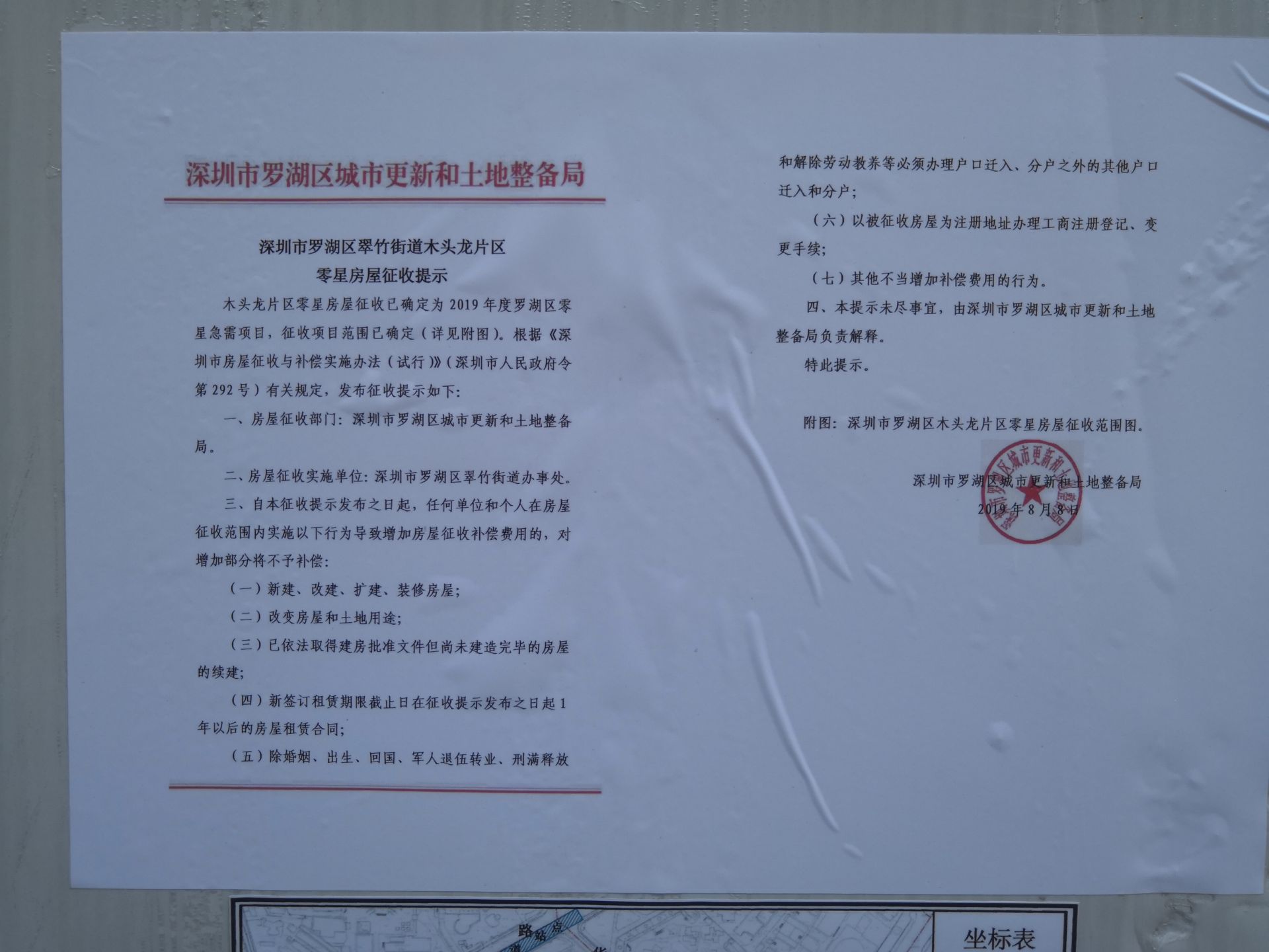 張貼在木頭龍片區(qū)的征收提示