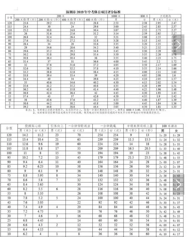 ▲深圳市2019年中考體育項目評分標準