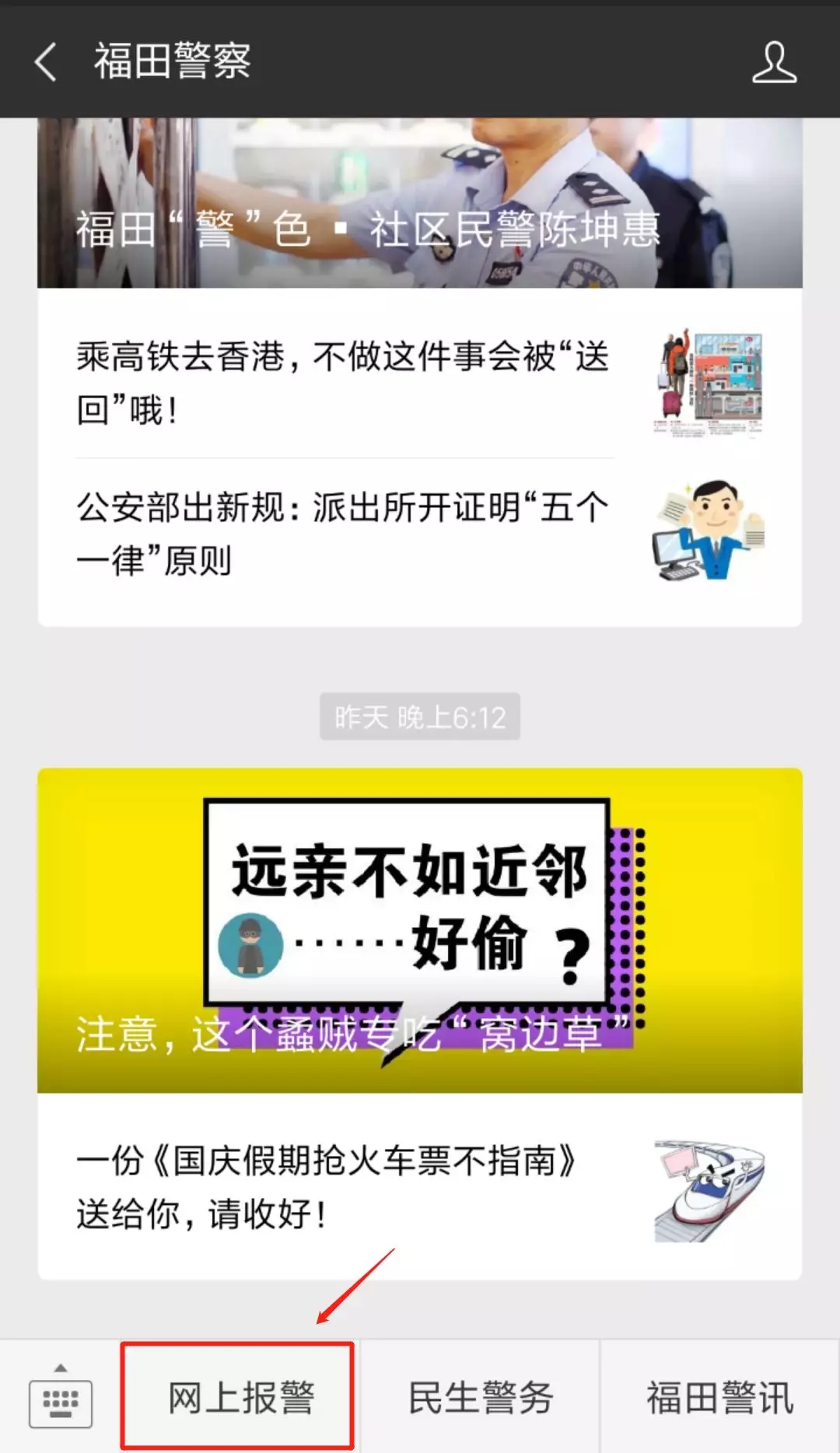 1、關(guān)注“福田警察”微信公眾號(hào)