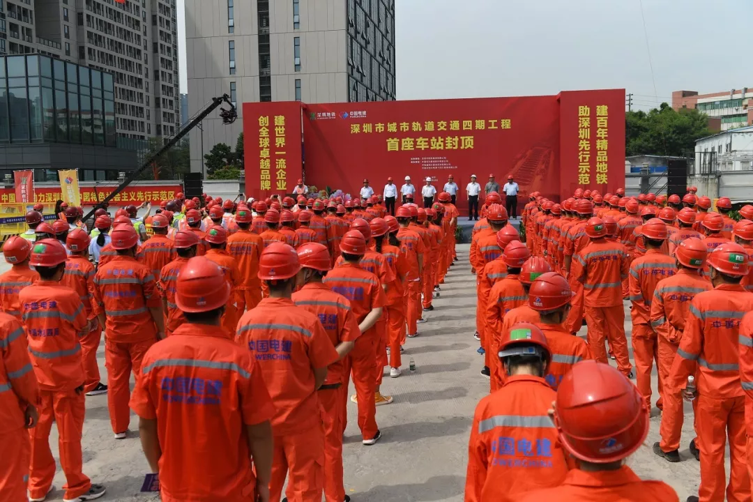 ▲深圳市城市軌道交通四期工程首座車(chē)站-洲石路站封頂儀式現(xiàn)場(chǎng)