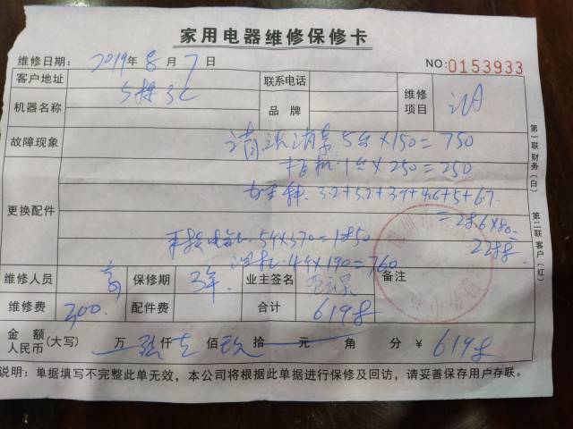 藍先生的妹妹在58同城小助手,找到了深圳市易臣國際貨運代理有限公司,并預(yù)約了上門清洗空調(diào)的服務(wù)。當(dāng)師傅上門以后,除了清洗外,還說空調(diào)存在多個問題,如需要加雪種(學(xué)名“氟利昂”)、線路老化、空調(diào)漏水等,6臺空調(diào)整體清洗加修理下來,藍小姐當(dāng)天共花費6618元。