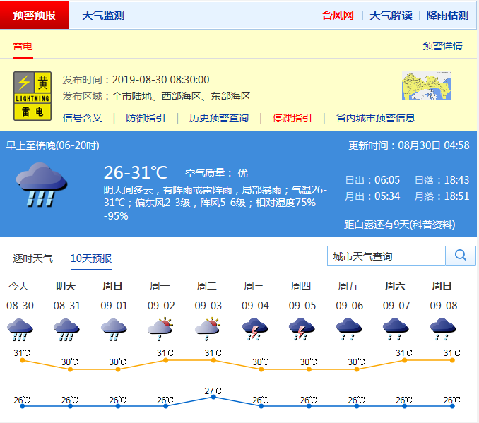 見圳客戶端·深圳新聞網(wǎng)2019年8月30日訊 今天多云間陰天,轉(zhuǎn)中到大雨,局部暴雨;26-31℃;偏東風(fēng)2-3級,陣風(fēng)6-7級;濕度75%-95%。臺風(fēng)“楊柳”未來趨向越南,繼續(xù)遠(yuǎn)離我市。預(yù)計(jì)31日至9月1日深圳多雷雨,局部暴雨,2-3日有短時(shí)陣雨。