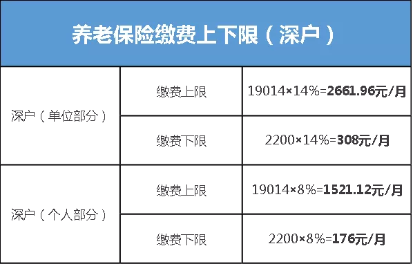 繳費基數(shù):為職工上月工資總額,最高為上年度廣東省全口徑城鎮(zhèn)單位就業(yè)人員月平均工資6338元的3倍,即19014元,最低為深圳市最低月工資標(biāo)準(zhǔn)2200元。