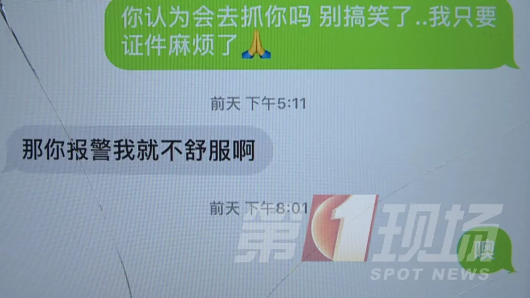 陳先生事主:我就說(shuō)錢你拿去,把證件還給我行不行,他居然說(shuō):“你報(bào)警我就不舒服了”,難道我報(bào)警還有錯(cuò)嗎?真的太猖狂了。