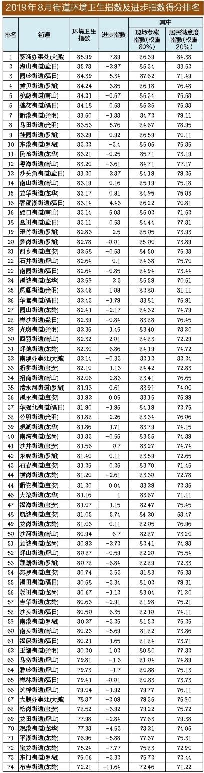 原標(biāo)題:8月份深圳市環(huán)境衛(wèi)生指數(shù)測評成績發(fā)布