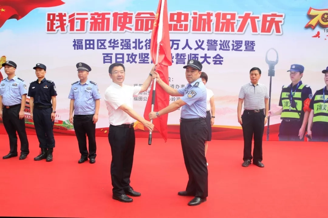 在大會上,福田公安分局副局長譚慶彬表示:“組織義警隊伍開展大巡邏大防控,重點在于拓寬人民群眾參與社會治安防控渠道,最大限度挖掘群防群治社會資源,形成多層次、全方位的群防群治網(wǎng)絡(luò),進一步實現(xiàn)各類警情持續(xù)下降、治安難點有效整治、立體防控更加完善、安保維穩(wěn)平穩(wěn)可控、人民滿意度不斷提升的工作目標(biāo)。我們要最大限度地動員和實現(xiàn)社會力量參與平安建設(shè),筑牢社會治安防控體系,以制度化、規(guī)范化、精細化、專業(yè)化的管理,鍛造出一支拉得出、沖得上、打得贏的華強北‘義警’鐵軍,為福田社會經(jīng)濟發(fā)展?fàn)I造更加安全、平穩(wěn)、有序的生產(chǎn)、生活環(huán)境?!?/p>