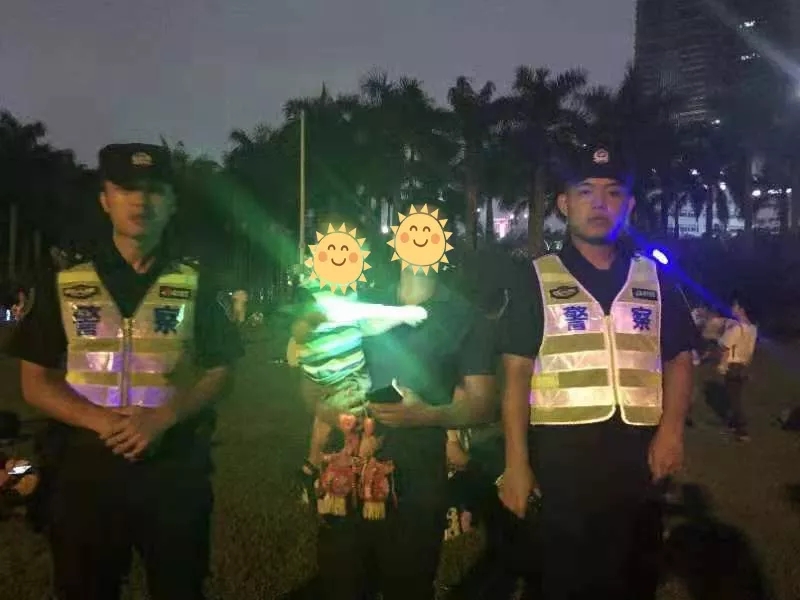 中秋夜21時(shí)許,深圳市公安局福田分局機(jī)動(dòng)訓(xùn)練大隊(duì)四中隊(duì)隊(duì)員黃俊豪、施裕楓在蓮花山巡邏時(shí),發(fā)現(xiàn)一名兩歲左右的幼童和父母走散了在哭著找媽媽?zhuān)蛐『⒛挲g太小無(wú)法獲取父母的聯(lián)系方式,兩名隊(duì)員便一直守護(hù)著孩子并在附近尋找其父母,直到找到其父親后送還小孩。