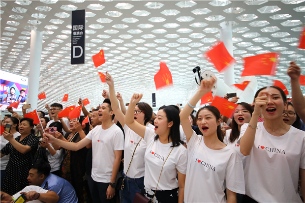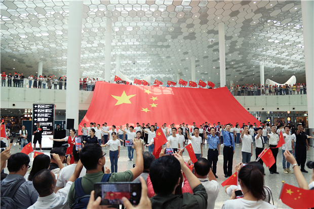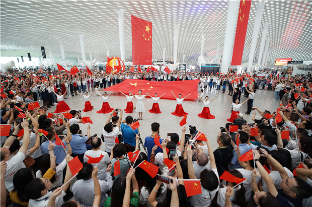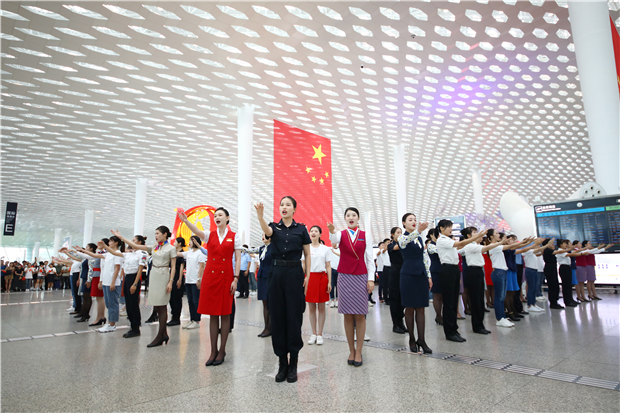 機(jī)場航站樓成“紅色海洋” 他們以這種方式慶祝新中國成立70周年