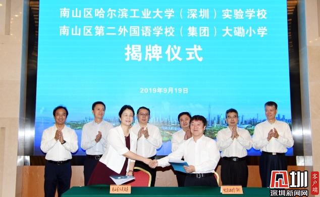 王強強調,黨中央、國務院賦予深圳先行示范區(qū)的使命,對教育事業(yè)發(fā)展提出了新的要求。南山作為深圳的教育高地,肩負著更加崇高的使命和社會各界更高的期盼。他希望,作為國家“985工程”建設高校和“雙一流”建設 A類高校的哈工大(深圳)能充分發(fā)揮豐富的資源優(yōu)勢和卓越的工科特色,與南山區(qū)精誠合作,將哈工大實驗學校打造成特色顯著、群眾滿意的現代化優(yōu)質品牌學校,在優(yōu)化合作辦學模式的道路上做好先行示范;希望南二外集團能集聚集團智慧力量,全面推進具有80多年辦學歷史的大磡小學內涵發(fā)展,在提升集團化治理效能方面做好先行示范。