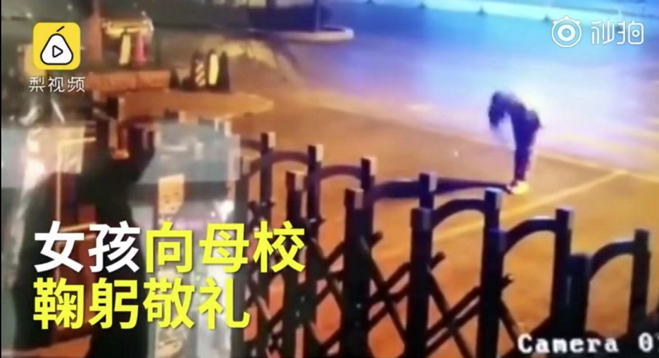 山西長(zhǎng)治一女孩夜跑經(jīng)過(guò)新華小學(xué)校門(mén)口,