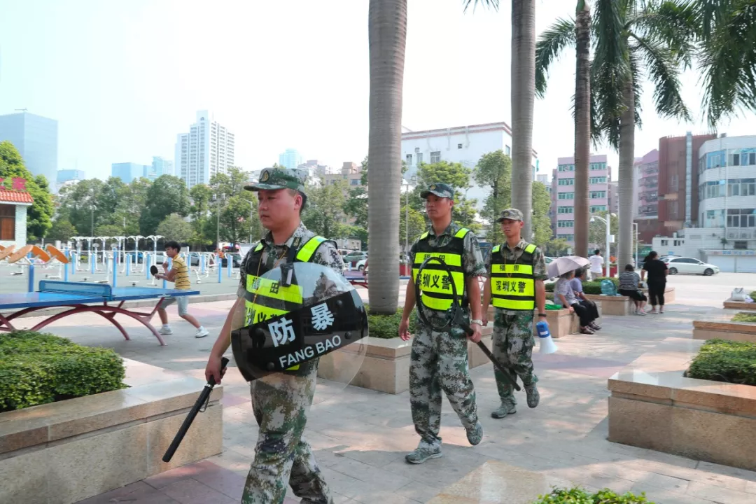 8月底,千名義警在會展中心暴雨中誓師演練,福田第一支5000人義警隊伍成立;9月初,福田區(qū)舉行組建五萬義警開展大巡邏大防控工作動員部署會,福田、福保等10個街道辦快速組建新時代義警隊伍。截至目前,福田區(qū)啟用義警值守崗14425個、巡邏崗3640個、4人或2人應急戰(zhàn)斗處置小組1023個,進一步加強社會面防控,提高安全防范措施。