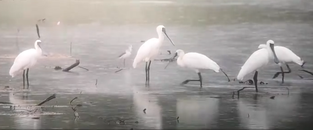 還沒入秋的深圳迎來了首批來深越冬的黑臉琵鷺種群,