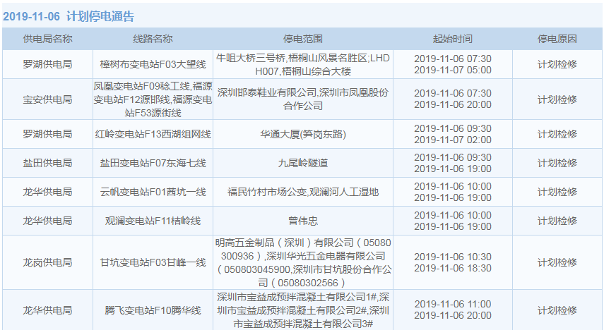 11月1日-15日,深圳這些地方將停電(附全名單)