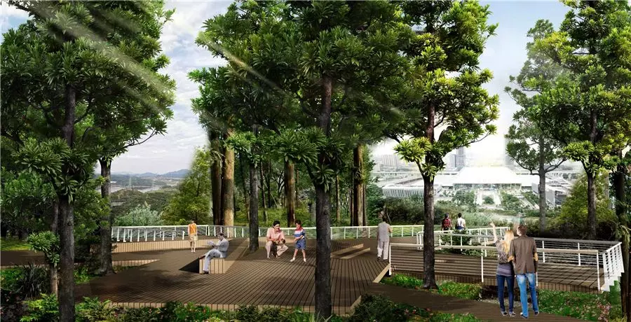 充分利用山頂?shù)匦?,以“人+才”的形式組合而成,取名為人才臺。節(jié)點(diǎn)視線佳,東望深圳北站商務(wù)區(qū),西眺長嶺陂水庫,是一個(gè)絕佳的休憩觀景平臺。