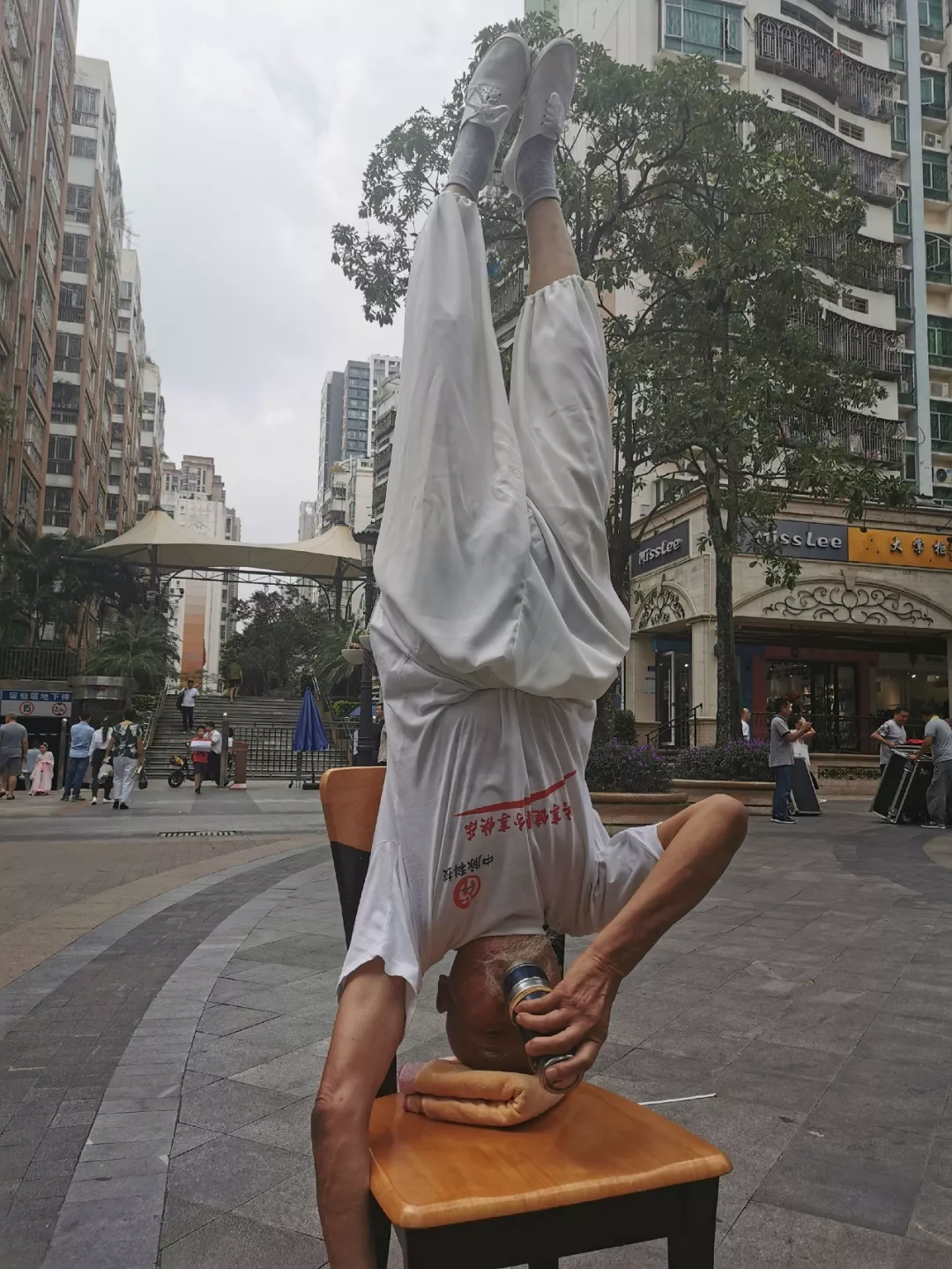可倒立喝水、倒立吊環(huán)、倒立寫字…南山這位85歲老人火了
