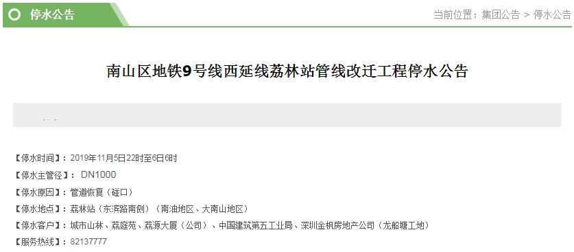 停水時(shí)間:2019年11月5日22時(shí)至6日6時(shí)