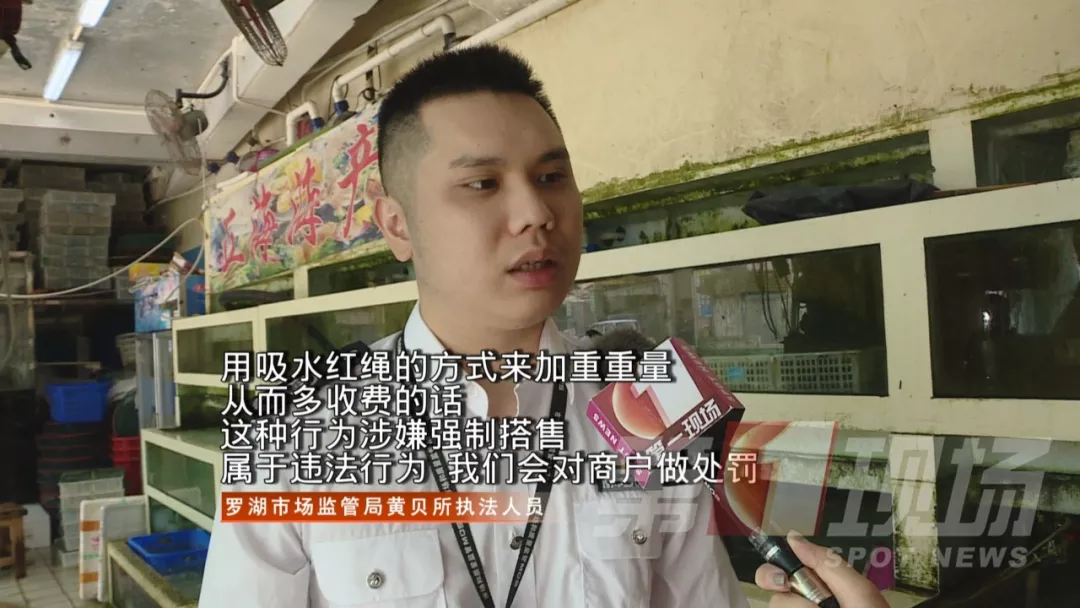 執(zhí)法人員表示,如果商鋪用粗紅繩來綁膏蟹,以這種方式騙秤,屬于違法行為。