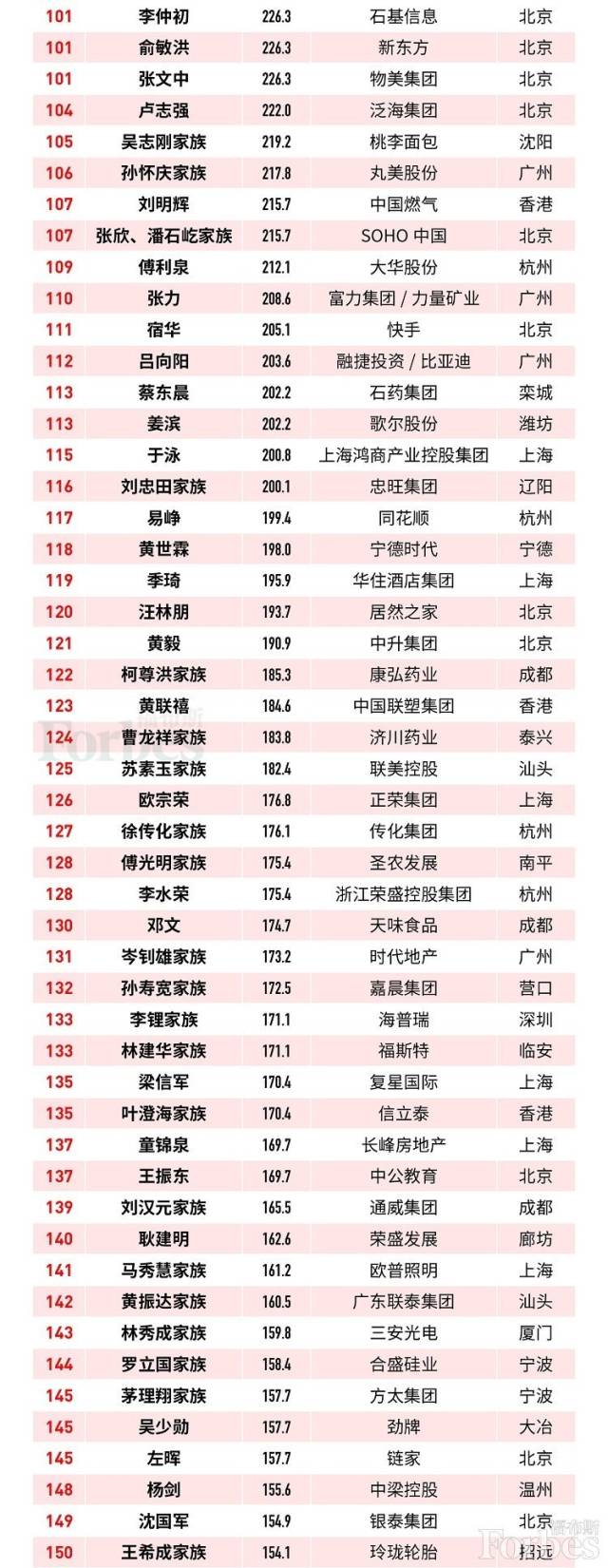 福布斯中國富豪TOP150