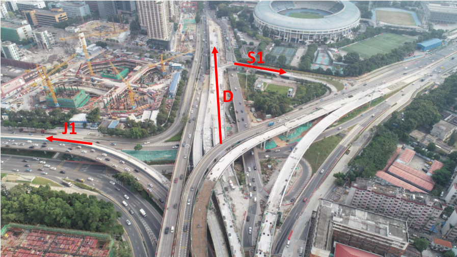 泥崗立交J1 (北環(huán)大道轉(zhuǎn)泥崗東路東行)匝道橋由三車道轉(zhuǎn)成四車道;泥崗立交D (北環(huán)大道轉(zhuǎn)上步北路南行)匝道橋由原來一條匝道橋新增至四條匝道橋,泥崗立交S1 (上步北路南行轉(zhuǎn)泥崗西路)匝道橋新增了兩條匝道橋, J1、D、S1匝道橋預計將于今年12月初開放通車。