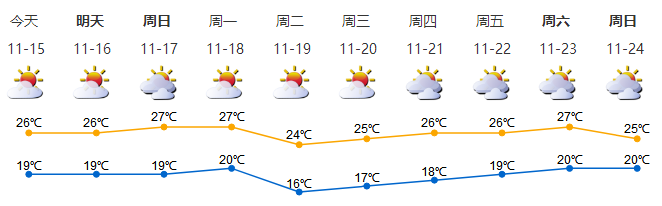 我市晴天間多云,空氣干燥;氣溫19-26℃;東北風(fēng)2-3級;相對濕度40%-85%。