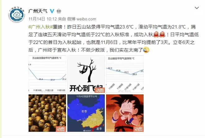 11月14日,在立冬6天之后,宣布入秋!