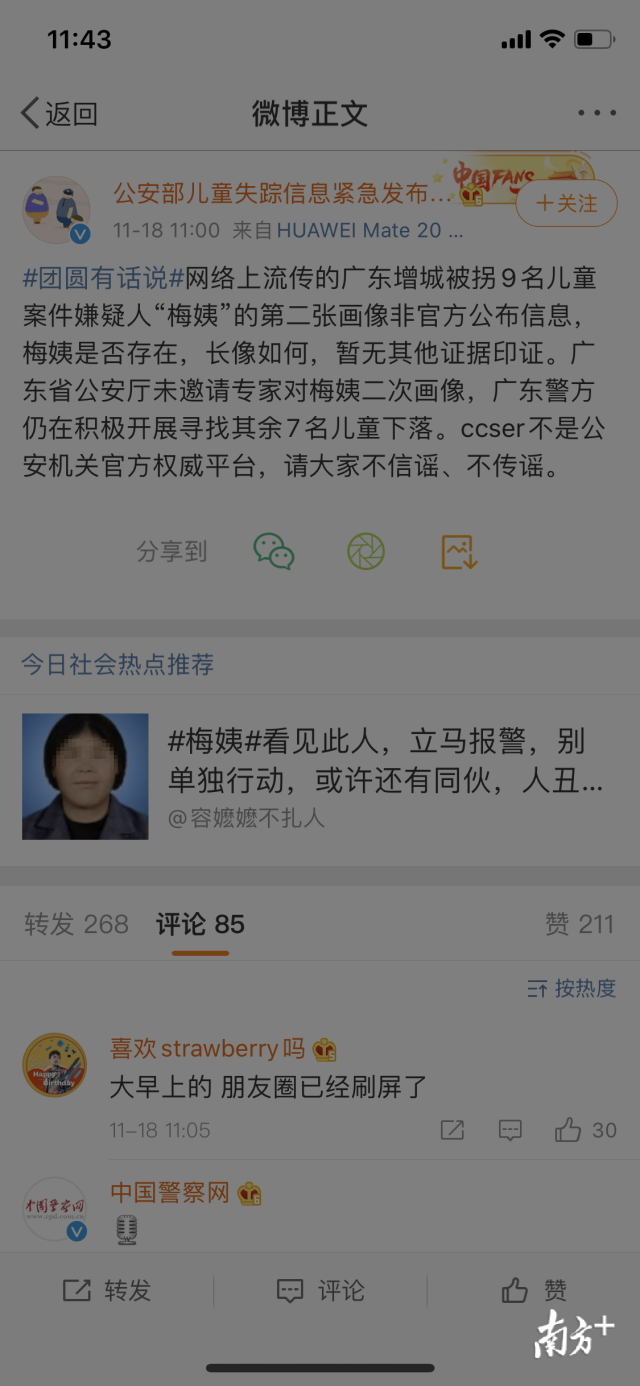 官方微博@公安部兒童失蹤信息緊急發(fā)布平11月18日11時許發(fā)布消息,對上述傳聞及時予以回應,內容如下: