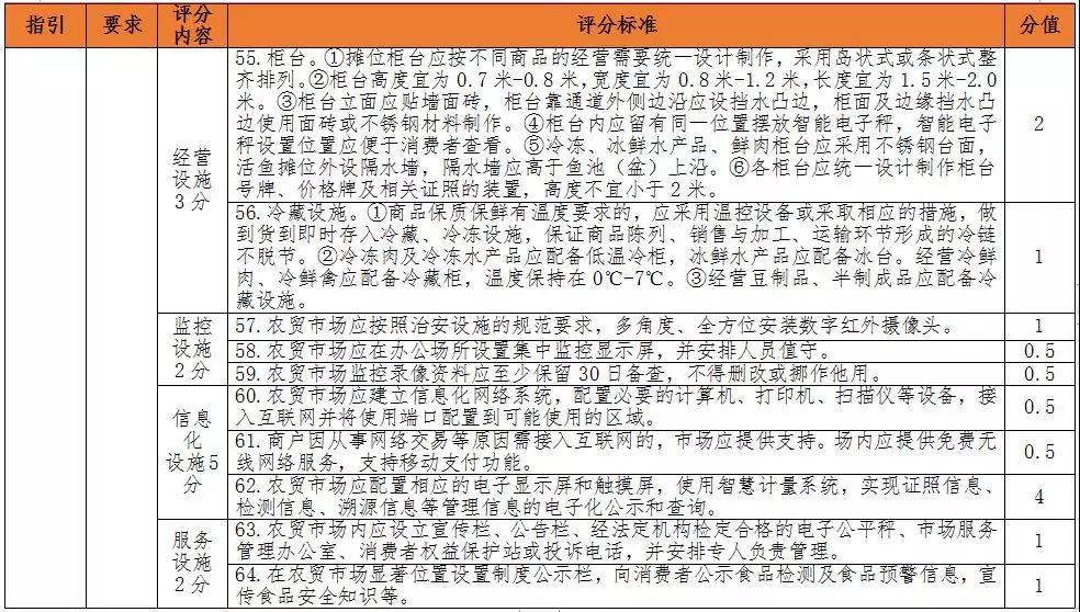 你想知道自家附近的農(nóng)貿(mào)市場(chǎng)達(dá)標(biāo)情況嗎?對(duì)照上面評(píng)審標(biāo)準(zhǔn)看看吧!