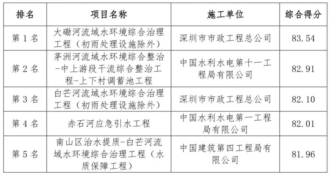 您關(guān)注已久的深圳市水務(wù)工程質(zhì)量安全評估通報已出爐!