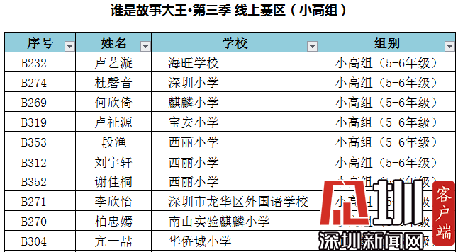 附:“誰(shuí)是故事大王·第三季”-線上賽區(qū)晉級(jí)深圳市復(fù)賽名單