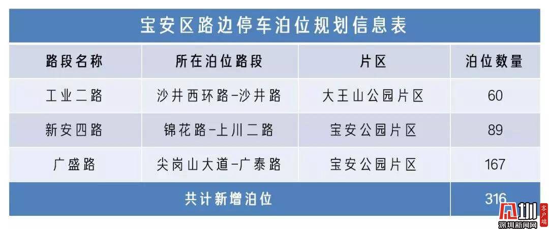 寶安區(qū)路邊宜停車位規(guī)劃信息表。