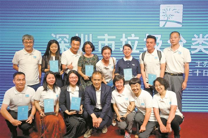 2018年9月1日許楷楠(前排右二)在深圳市垃圾分類大使聘任儀式上。