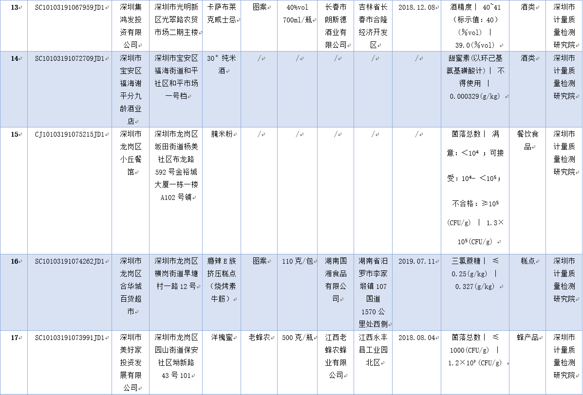 見圳客戶端·深圳新聞網(wǎng)2019年12月2日訊 為保障深圳食品消費(fèi)安全,深圳市市場監(jiān)督管理局于2019年8-9月組織對生產(chǎn)、流通、餐飲環(huán)節(jié)的食品開展了專項(xiàng)抽樣檢驗(yàn)工作。