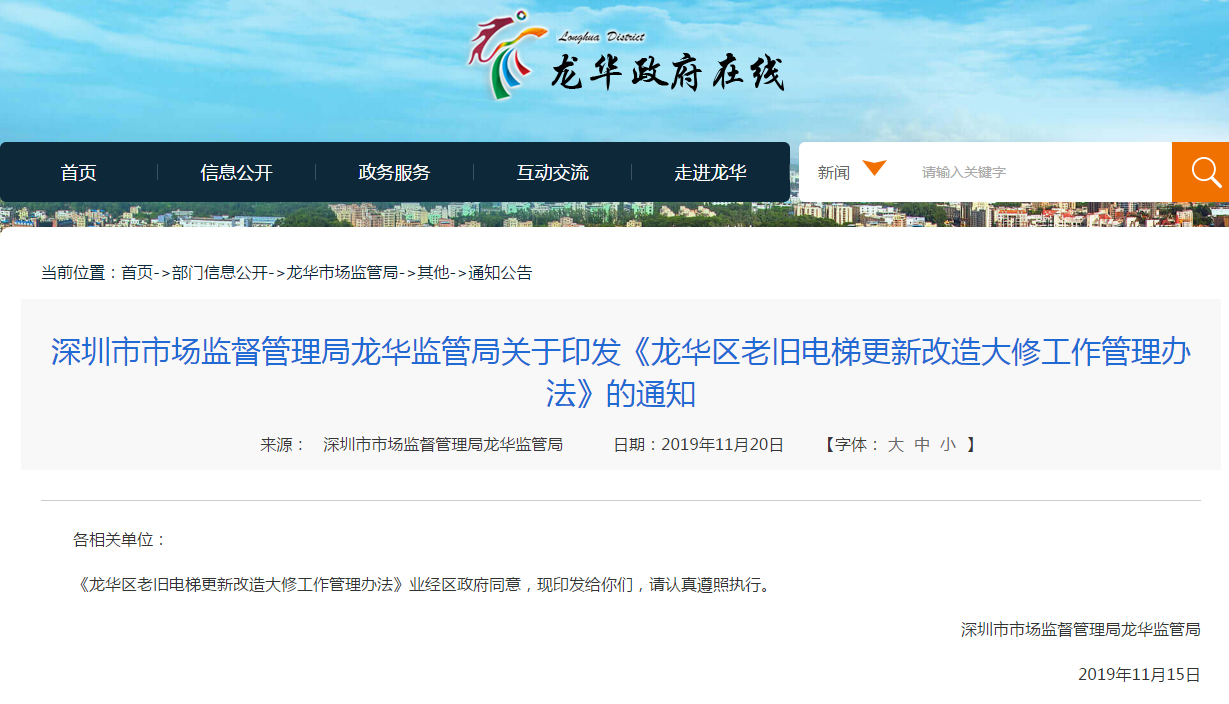 老舊電梯更新每臺補貼最高20萬!符合條件的單位可向深圳市市場監(jiān)督管理局龍華監(jiān)管局聯系報名,報名截止時間為:2019年12月13日。