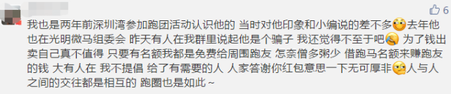 近日,有自媒體發(fā)布文章《太壞了!剛轉(zhuǎn)完錢就被拉黑!跑圈再現(xiàn)名額詐騙》。文章中稱,各個(gè)跑圈中紛紛傳出,一個(gè)深圳名叫“青梅煮酒”的人用深馬名額進(jìn)行詐騙,某個(gè)群就有十幾個(gè)人被騙,并且不止一個(gè)群的跑友。