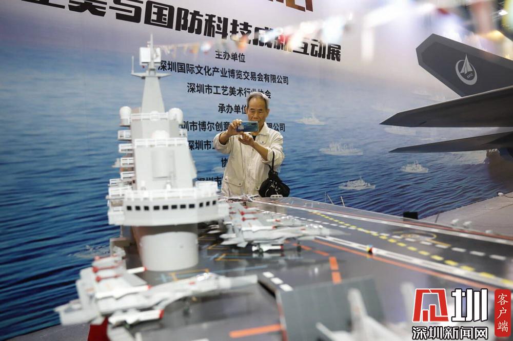 一位市民正在拍照,該模型為“遼寧號(hào)”航母模型。