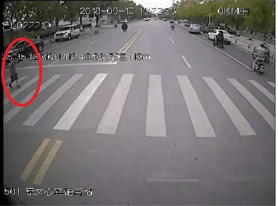 即將開過一處沒有信號燈的斑馬線。