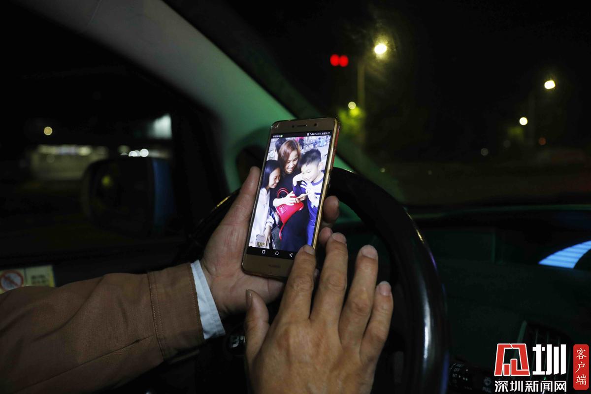 閑暇時(shí)間,艾建永正在看手機(jī)中妻子和兩個(gè)孩子的照片。