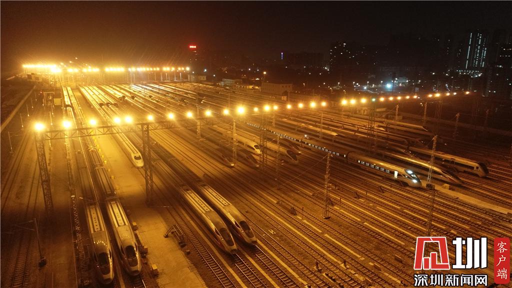 1月15日凌晨,深圳動(dòng)車運(yùn)用所內(nèi)的高鐵列車。