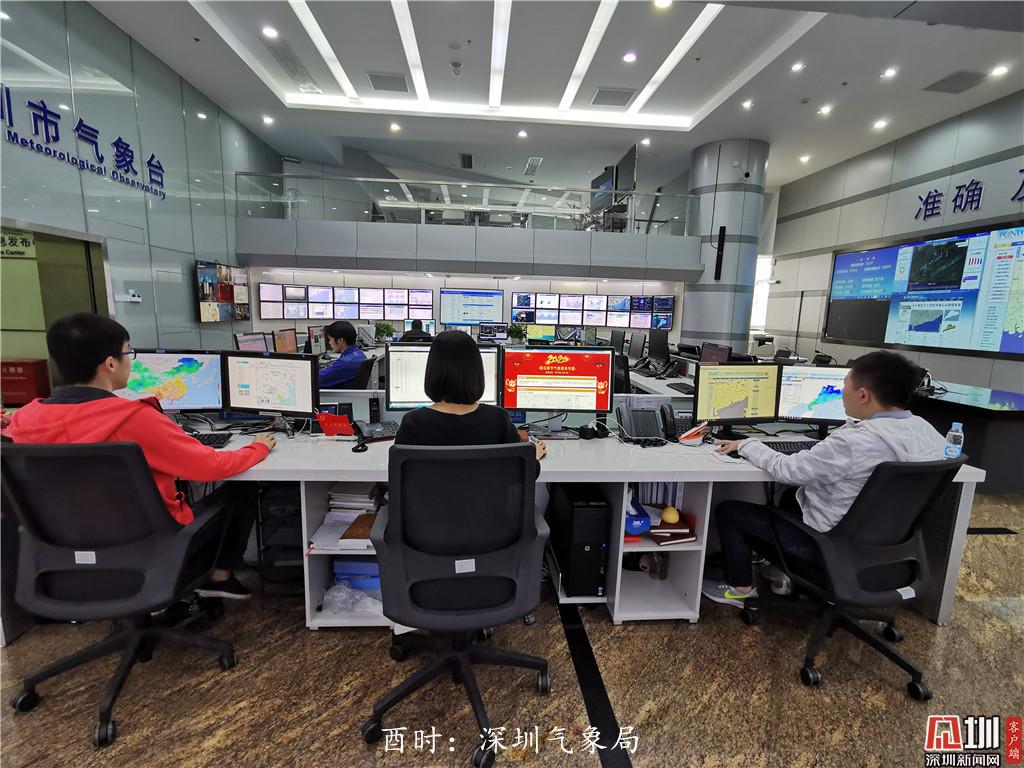 酉時:17點31分,深圳市氣象局預(yù)報服務(wù)團(tuán)隊的蔡偉源、鄭群峰、賀佳佳、胡霄、張超春節(jié)值守,在氣象預(yù)警預(yù)報業(yè)務(wù)大廳密切關(guān)注春運天氣。