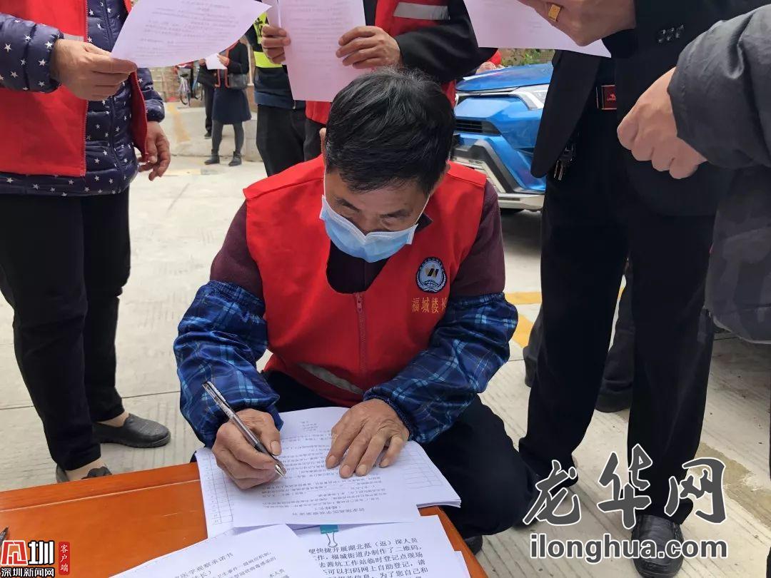 樓棟長李先生說:“作為樓棟長,我有義務履行我的職責,我今天也積極簽了公約,按了紅手印,為不能及時返深的湖北籍租客適當減免租金,做好樓道的消毒衛(wèi)生,盡自己的一份責任,把我的樓棟管理好?!?/p>