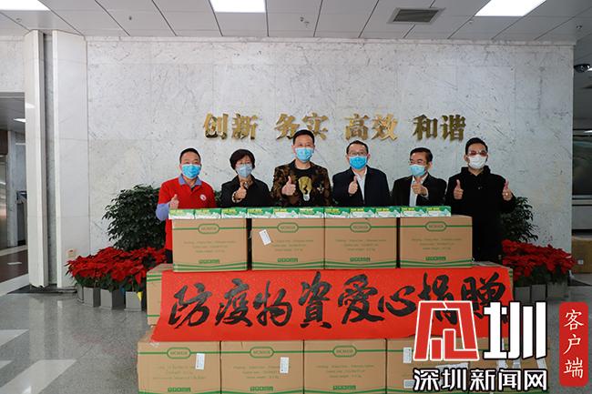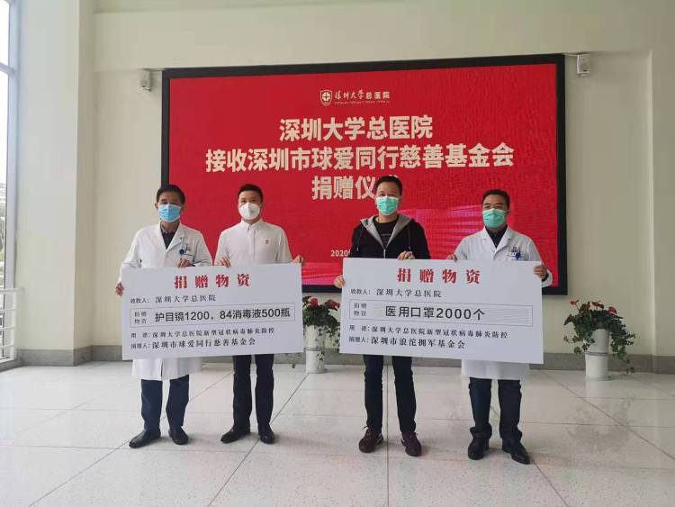 向深圳大學(xué)總醫(yī)院捐贈消毒藥水和口罩。