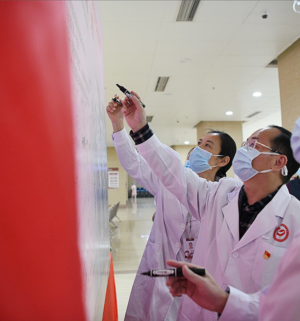 在整個疫情阻擊戰(zhàn)中,龍崗區(qū)婦幼保健院黨組織自始至終都發(fā)揮著不可替代的先鋒模范作用,在疫情剛開始的時候,以曹樂勝院長為首的醫(yī)院黨委就身先士卒緊急行動起來迅速投入到抗病毒戰(zhàn)斗中去。院黨委發(fā)出了通知,號召廣大員工積極行動起來,投身疫情防控第一線,全院人員迅速響應,截止2月3日,報名人數(shù)達369人,其中黨員112人。醫(yī)院組織了部分代表參加的宣誓儀式,大家激情滿懷地舉起右手,莊嚴承諾:我將堅守初心,勇?lián)姑粺o條件服從大局,時刻準備著聽候組織調(diào)令;立志沖鋒在前,誓到防疫第一線;我必履職盡責,嚴守規(guī)范,防護到位,確保零感染;保證與病毒戰(zhàn)斗到底,不打贏這場硬仗絕不收兵。